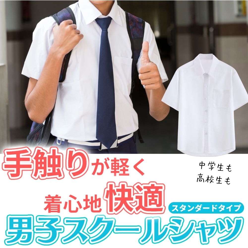 学生のためのスクールワイシャツをご紹介します。このYシャツは中学生や高校生の学生服に最適です。半袖の開襟シャツで、通学用にぴったりのデザインです。