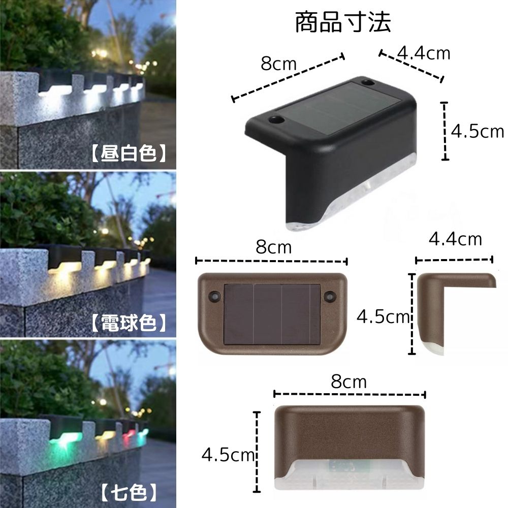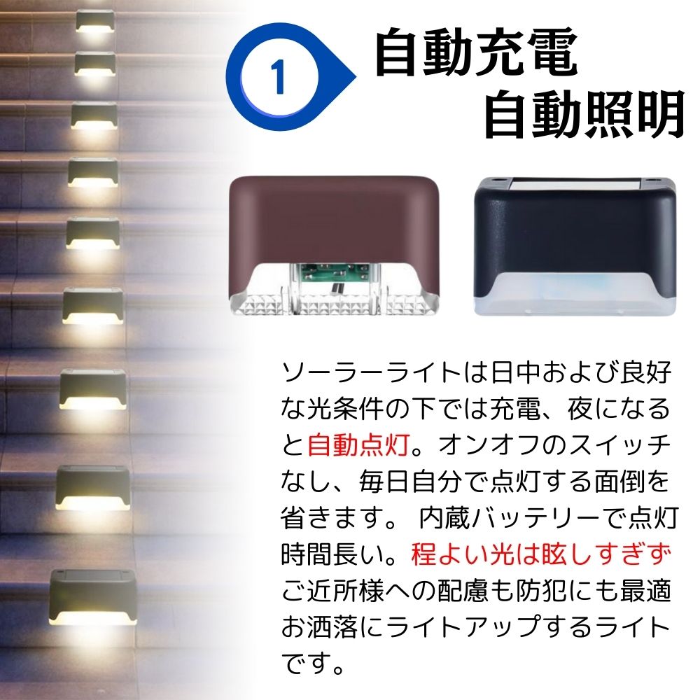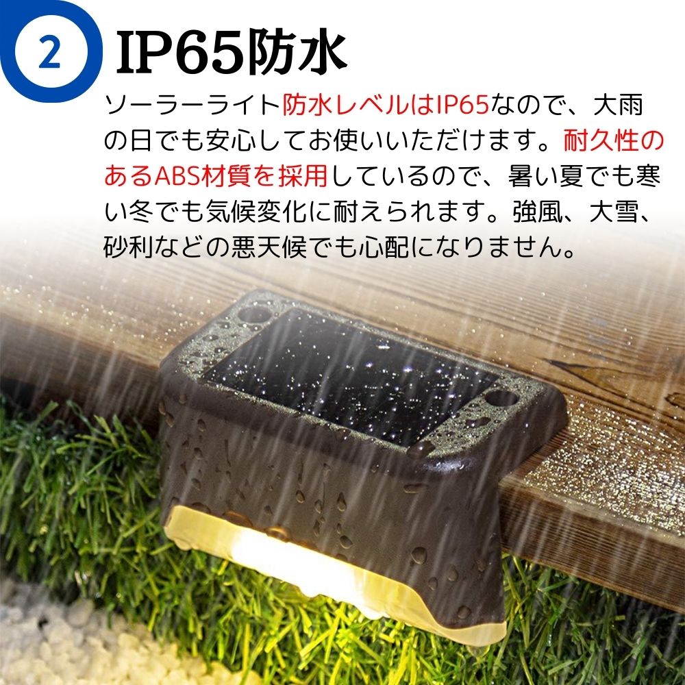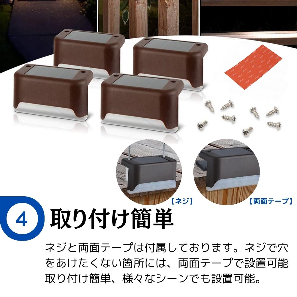 【4個セット】 ソーラーライト 屋外 置き型 ライト階段 駐車場 ガーデンライト ソーラーライト屋外貼り付け 室内で使う 屋外 防水 吊り下げ