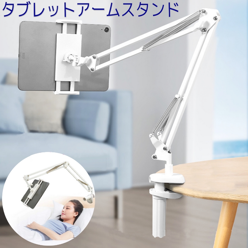 タブレットアームスタンド ベッド スマホスタンド タブレット スタンド スマホアームスタンド アームスタンド 白 フレキシブル iPhone iPad Android