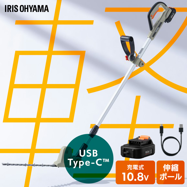 (検索用:Type-C充電&バッテリー共用できる ポールヘッジトリマー 充電式 10.8V 電動 軽量 最大2.2m 高所 生垣 高枝 庭木 植木剪定 コンパクト 肩掛けストラップ 4967576780124)