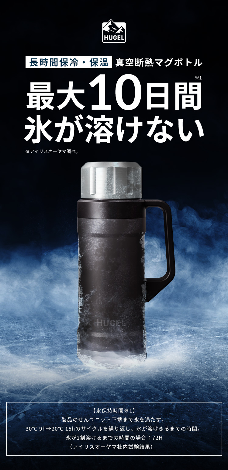 (検索用:水筒 1.9L 大容量 保温 保冷 蓋まで 真空断熱 高保温 高保冷 マグボトル ハンドル 持ち手付 持ち運び アウトドア キャンプ レジャー 釣り 部活 スポーツ 運動 子供 1.9リットル 1900ml アイリスオーヤマ HUGEL HSB-1900 4967576823203)