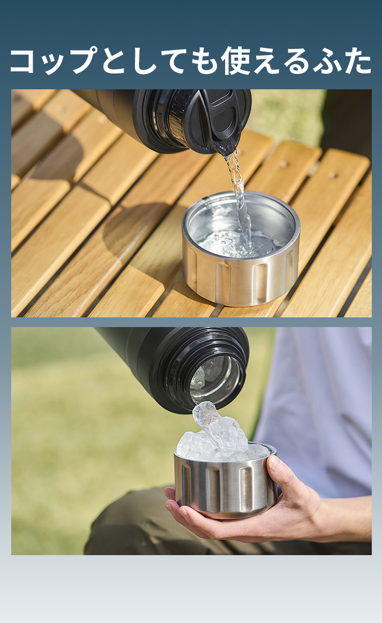 ふたまで真空断熱構造をほどこし、ボトル全体で放熱を防ぐ全面真空断熱構造です。