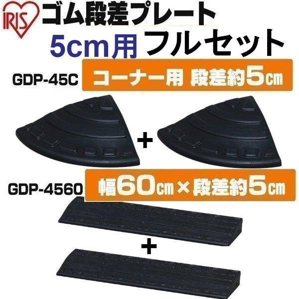 段差プレート 約5cm 幅約60cm ゴム製 段差解消スロープ 段差スロープ コーナー用 セット ブラック 5cm用 フルセット アイリスオーヤマ