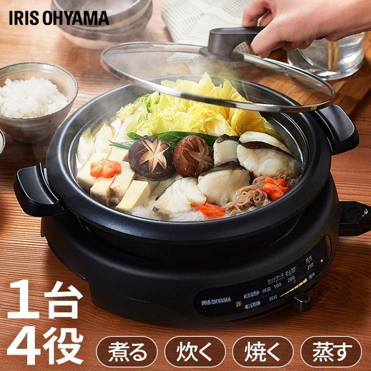 グリル鍋 鍋 なべ 電気鍋 おしゃれ アイリスオーヤマ ホットプレート プレート コンパクト 一人暮らし 蓋付き ガラス蓋 丸洗い可能 1枚プレート IGU-B1-B