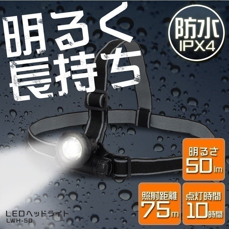 ヘッドライト led 電池式 釣り 作業灯 防水 作業場 登山 アウトドア 山登り 点検 警備 防災 暗所 停電 災害 50lm LWH-50 アイリスオーヤマ