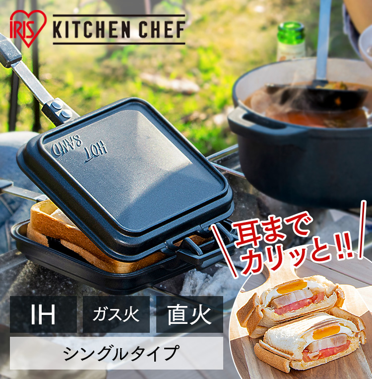 (検索用:ホットサンドメーカー ホットサンド ホットサンド用 サンドメーカー 耳まで IH ガス火 直火 両用 フッ素加工 アウトドア キャンプ おうちカフェ トースト 食パン サインドイッチ フライパン お手入れ簡単 4967576600583)