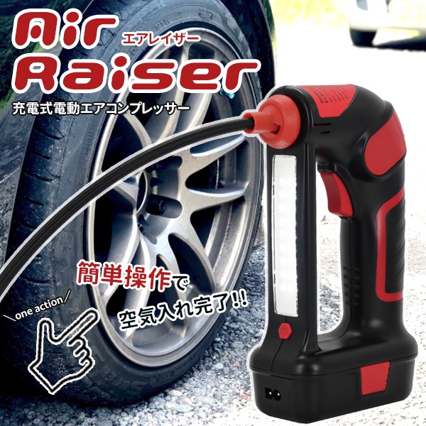 エアコンプレッサー 充電式 電動エアコンプレッサー AirRaiser 赤 KB-8003-RD SIS (D)