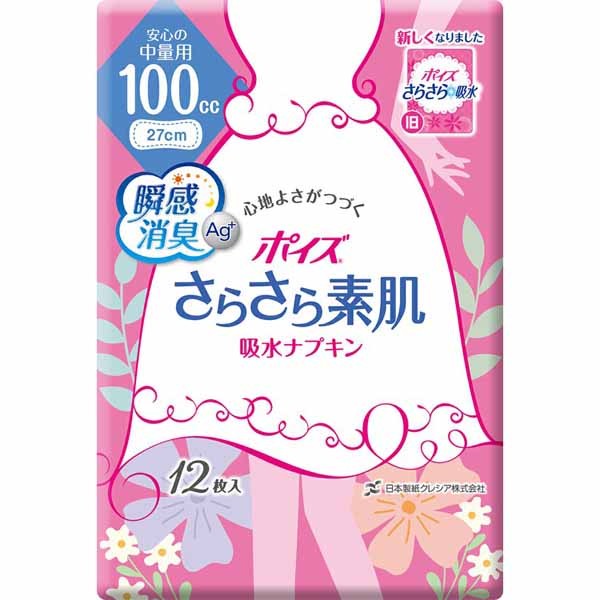 ナプキン 生理用品 ポイズ さらさら素肌 生理用ナプキン 吸水ナプキン 安心の中量用100cc (ふとした尿もれケアに) 12枚 日本製紙クレシア 新生活 (D)