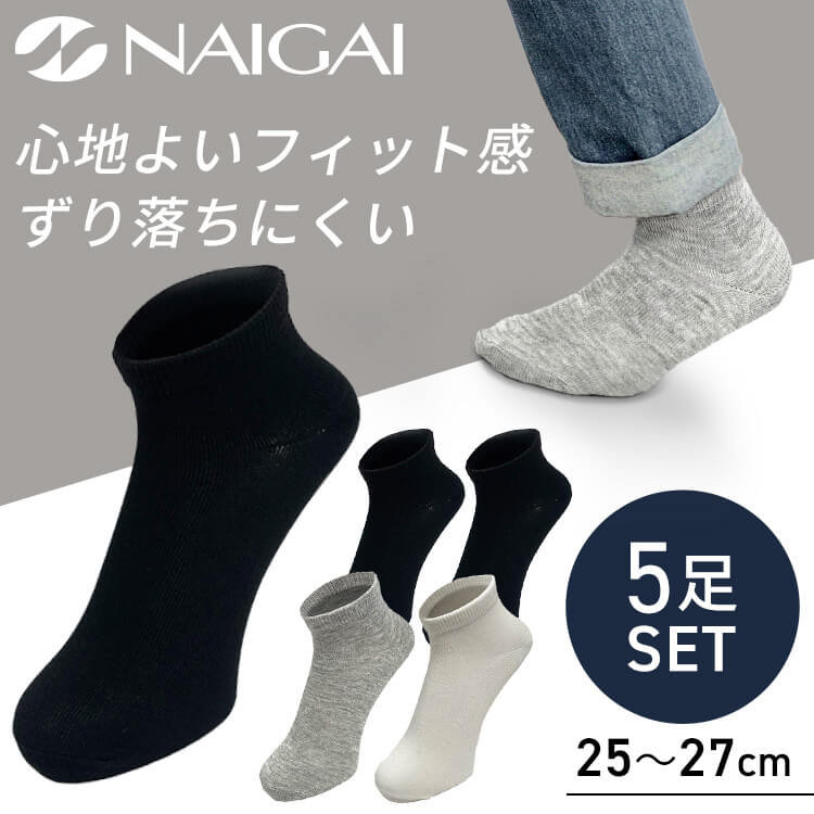 メンズカジュアルショートソックス5足組。