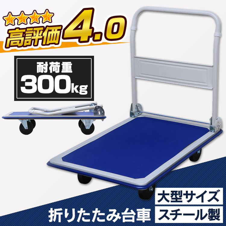 台車 折りたたみ キャスター 軽量 300kg タイヤ 業務用 コンパクト 運搬用台車 平台車 家庭用 スチール台車 SLD-H001BL 耐荷重300kg 大型