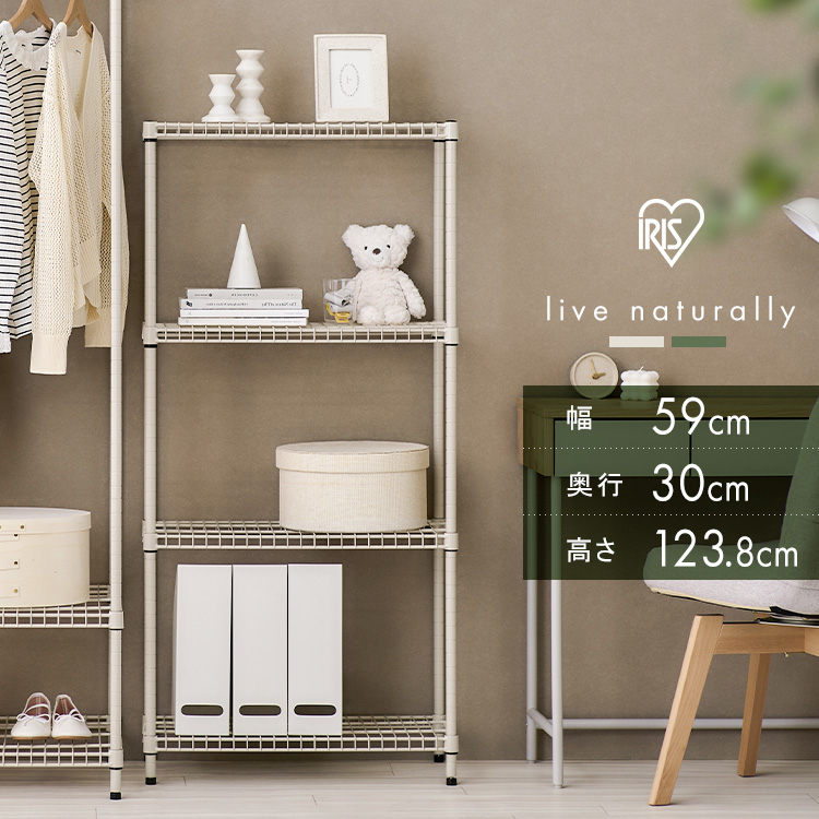 [ラックタイプ:小(4段)/W59×D30×H123.8cm(アジャスター含む)]。