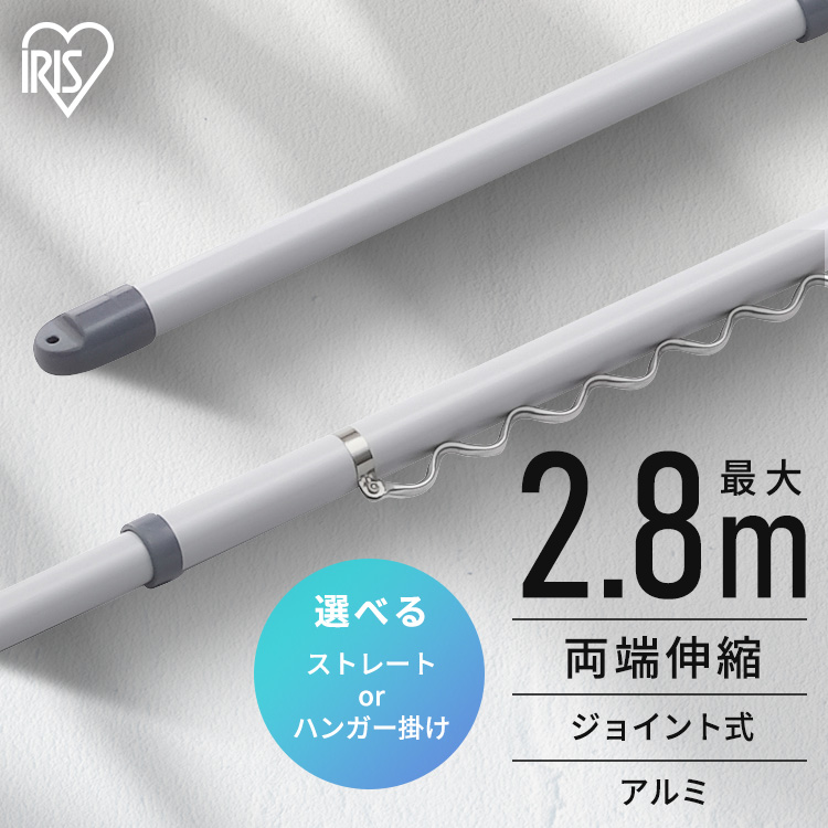 (検索用:物干し竿 1.6〜2.8m 伸縮物干し竿 アルミ ストレート ハンガー掛け付 軽量 組立簡単 屋外 ベランダ物干し 室内 物干し 梅雨 花粉 4967576741064 4967576741071)