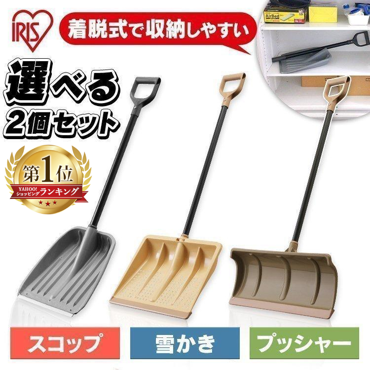 雪かきスコップ 除雪 スコップ 雪かき 選べる2個セット 除雪スコップ 車 雪かき棒 車載 プッシャー 除雪用品 家庭用 雪 着脱式 アイリスオーヤマ