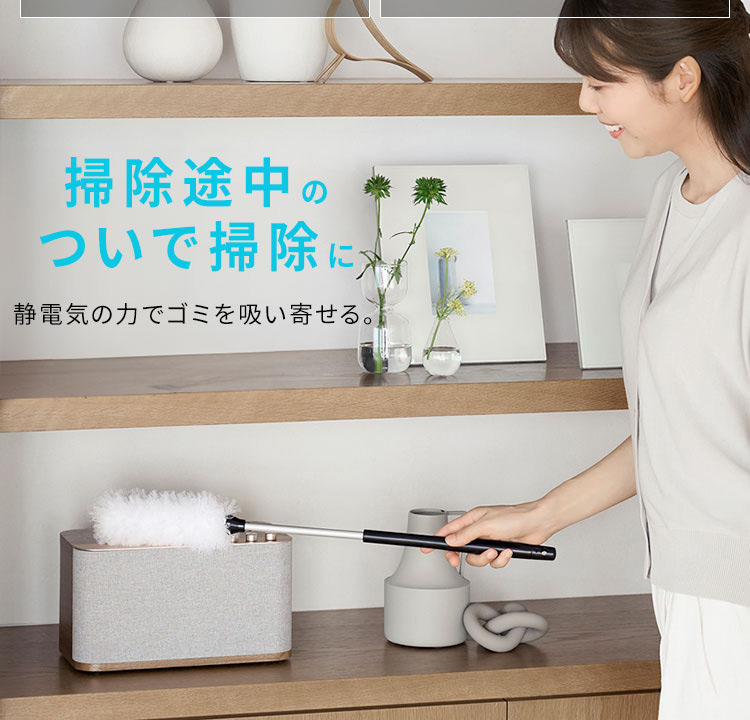 モップ帯電ケースで静電気を帯電させ、ホコリを吸着し、クリーナーで吸引するから何度も使えて経済的です。