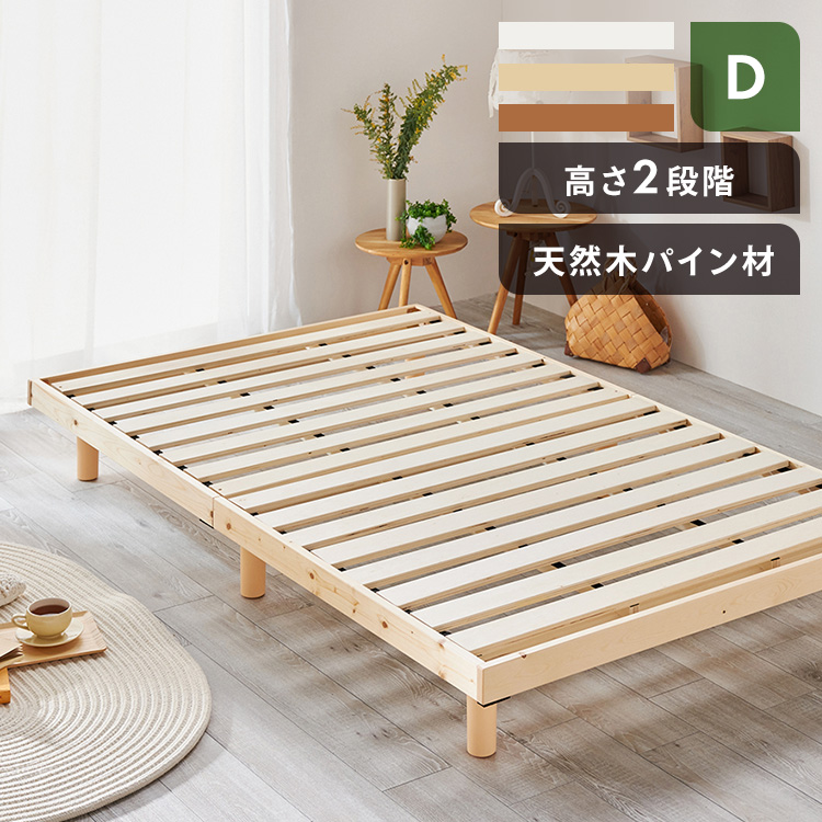 ダブル ベッド すのこ 安い フレーム すのこベッド 天然木パイン材 ローベッド 高さ2段階 高さ調整 高さ調節 木製 シンプル