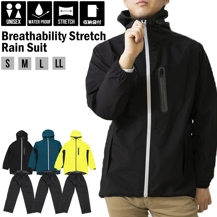 ムレにくく、サラリとした着心地の透湿ストレッチレインスーツ。
