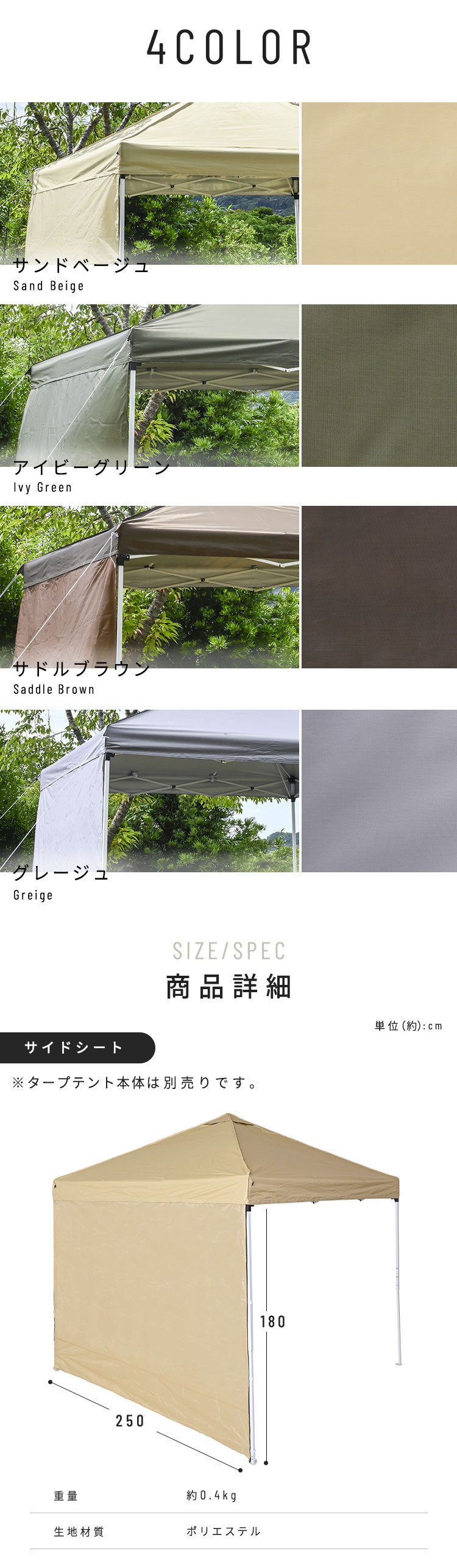※タープテント【2.5×1.8mサイズ】用のサイドシートのページです