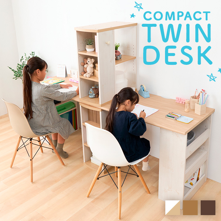 学習机×2台 レイアウト自由 ツインデスク リビング学習 デスク+ラック シンプル おしゃれ 長く使える リビング学習 兄弟 キッズ