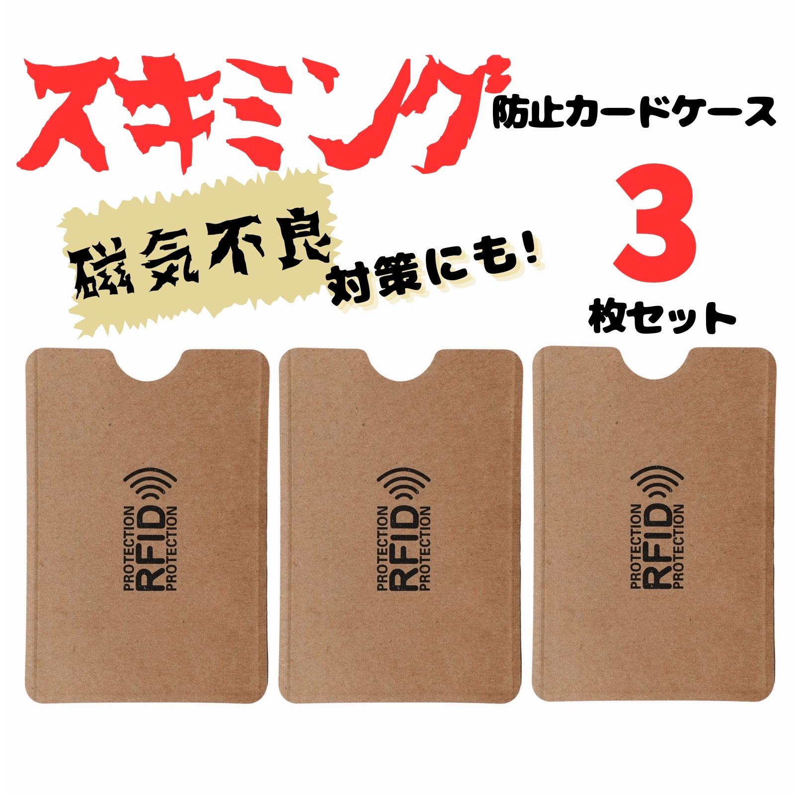 スキミング防止 カードケース 3枚セット ナチュラル 磁気 電波 遮断 磁気不良 RFID スリーブ 薄型 防犯
