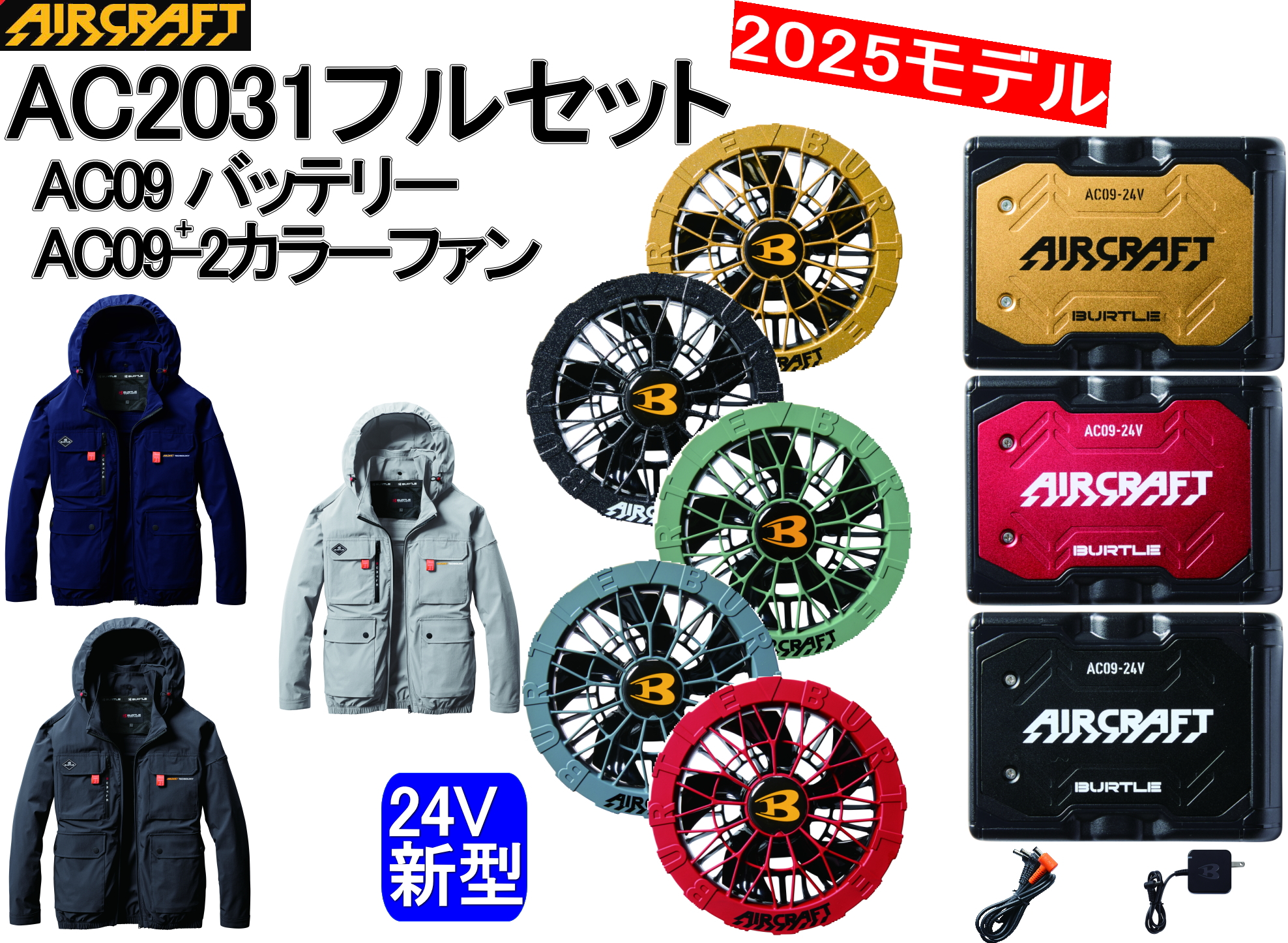【即納】バートル 2025最新 AC2031 ハイバック 長袖 フルセット 24V AC09 AC09-2 バッテリー&ファン エアークラフト 空調服 BURTLE