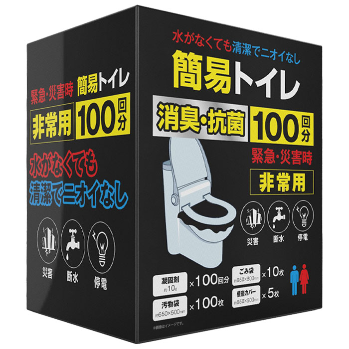 | 凝固剤約10g×100個 汚物袋×100枚 ごみ袋×10枚 便座カバー×5枚 |