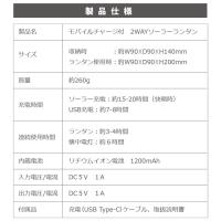 レジャーやアウトドア、もしもの時の必需品! モバイルチャージ付き2wayソーラーランタンです。 太陽光またはUSB充電の2電源タイプ。 モバイルバッテリー機能搭載でスマートフォンや携帯を充電することが可能です。 ランタンとして周囲を明るく照らしたり、懐中電灯として遠くを照らせる2WAY仕様。 使用上の注意 ・内蔵バッテリーには寿命があります。ソーラー充電しても充電されない場合はバッテリーの寿命となります。 ・本体に強い力をかけないでください。 ・乱暴に扱ったり落下などの衝撃を本体に加えないでください。破損、故障の原因となります。 |