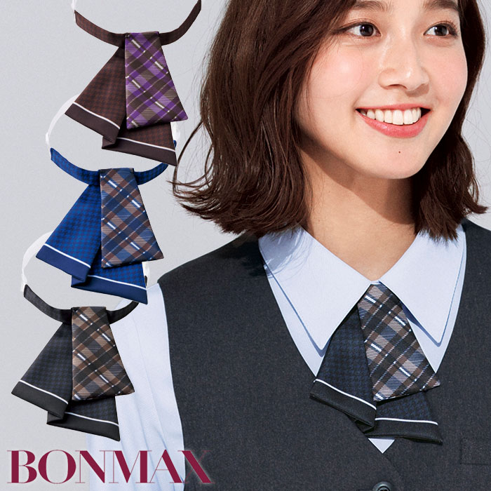 事務服 リボン ブラウン ネイビー ブラック アジャスター BA9147 リボンタイ チェック柄 オフィス 仕事服 受付 制服 ユニフォーム ボンマックス 爆買