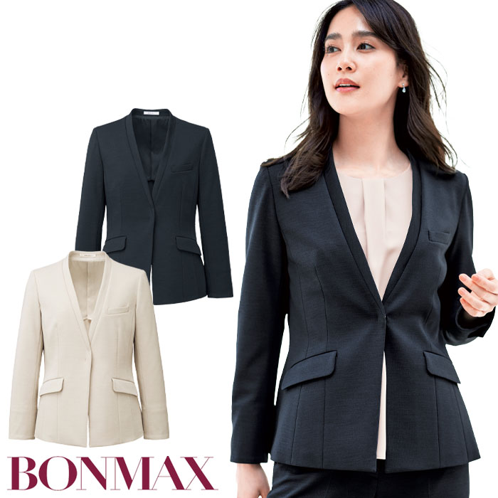 17号 19号 事務服 ジャケット ノーカラー レディース ニット 防汚 BCJ0125 オフィス ビジネス 制服 ユニフォーム ボンマックス 爆買