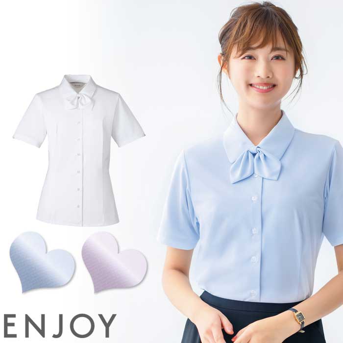 ニットとは思えないほどの美しいハリとスマートな質感 待望のサラッとした着心地を実現したニットブラウス。 従来のニットブラウスは肌にまとわりつきやすく熱がこもりがちでしたが、肌離れがよくなることで熱もこもりません。 ほどよい伸縮性があり、シワや折り目がつきにくい2WAYストレッチで、形態安定性に優れています。 バストケアはもちろん、enjoyARM360°で動きやすく、ボトムからシャツの裾が出にくい仕様です。 リボンは取り外しが可能、首元をすっきり見せる開衿ブラウスとしても着られます。 |