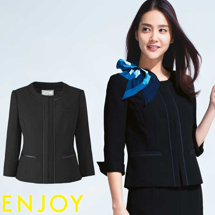 「夏も、凛と」涼しさを極めたブラックスーツ どんなに暑い日も笑顔を絶やさず、最高のサービスを届けたい。 その想いを叶えるために生まれた、究極に涼しいブラックスーツ。 美しい色と緻密なデザインで、接する人にも清々しさを感じさせます。 エレガントでノーブルなノーカラーの7分袖ジャケットは、同シリーズのマーメイドラインスカートを合わせると見る人の心も華やぐフェミニンな佇まいに。 仕立て映えする美しさと上品な杢感で、発色の良さも魅力です。 高機能素材でもっと涼しく、エレガントに ドライタッチで軽量、通気性のよい強撚タイプのストレッチ素材を使用。 空気と熱を通し、ドライな肌ざわりをキープします。 高通気の97cc/cm2/sec(JIS L 1096 フラジール形法にて測定)。 また、消臭加工織物「ナノアージュ®」がすばやくニオイを消臭。繰り返し洗濯しても、消臭効果は長持ちします。 シワになりにくく、メンテナンス性にも優れた高級感のある素材です。 ポイント ・腕を伸ばしても、ぐるぐる回してもきゅうくつ感がなく快適なSwing ARM360°仕様。 ・スカーフループ®付き。スカーフをループに通すだけできれいな形が完成。首に直接巻かないので快適です。 ・袖口にはスリットが入っており、折り返しての着用も可能。 ・フロントを閉めて着用したときに、胸もとが開かないようホックの間隔を調整したバストケアピッチ仕様です。 ・スマートフォンもすっぽり入る両脇の大容量ポケット。右ポケット内側にはハンコポケット付き。 ・夏でも着用できるよう裏地はメッシュ素材を使用し、背中は背抜き仕立て、袖部分は裏地なしで仕立てています。ブラウスに重ねても涼しさをキープします。 |