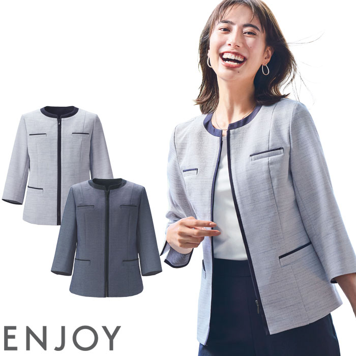 夏のお悩みのダントツ1位は暑さに関するもの。そこで、接触冷感やムレにくい機能を持つ素材に加え、いちばん暑さを感じるとされる首元にマイナス2℃の涼感機能を持つ「冷んやりシート」を装着。着ているだけでクールダウンしてくれます。ワークシーンを選ばず幅広い職種に対応しながら、女性のお悩みをテクノロジーで解決し、夏を快適にするフェムテックアイテムです。 ライトジャケットは長めの丈でパンツとも相性抜群。接客シーンに嬉しいインカムループ付きです。 |