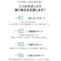 一年中毎日のように着るブラウスだから、快適性にはこだわりたい。動きやすく、シワになりにくく、お洗濯などのお手入れが簡単。シンプルで清潔感のあるデザインは顔映りをパッと明るく見せてくれるのにも一役。 リボンは取り外しが可能で、首元をすっきり見せる開衿ブラウスとしても着られます。 ニットなのに、きちんときれい見え【4つのサポートで働く毎日を応援】 Support1)着こなしサポート 着やすさはそのままに、ニットの悩みだったダレ感を解消して、きれいな衿元をキープ。 Support2)清潔感サポート 防汚加工で汚れが落ちやすく、消臭テープが付いているので、気になる臭いにも安心。 Support3)快適さサポート 軽量でストレッチ性の高いトリコット素材で、動きやすい。 Support4)お手入れサポート 吸汗速乾素材なので、お手入れがラク。ノーアイロンでもOK! |