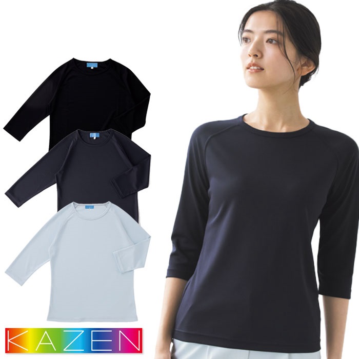 カゼンの快適インナーTシャツ スクラブ着用時のインナーとして、吸汗・速乾性に優れた七分袖Tシャツ。3色展開でコーディネートの幅が広がります。 洗濯耐久性を備えた、肌触りの柔らかなTシャツ素材です。 |