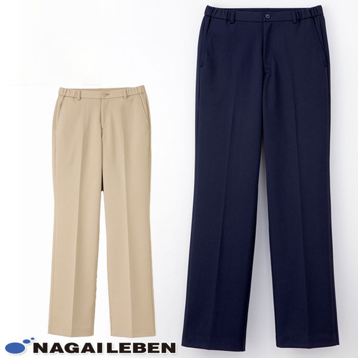 | 制菌加工 制電 吸水 防汚 ストレート ノータック 脇ゴム・前ファスナー有り 両脇ポケット 右後ろポケット 股下フリー(裾上げ必要) |
