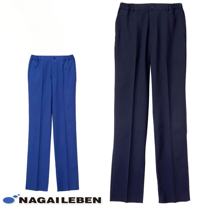 制菌加工 制電 吸水 防汚 両脇・後ろ右ポケット付 ウエスト脇ゴム ノータック、後ろダーツ 股下フリー(裾上げ必要) |