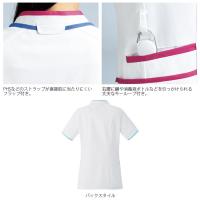 ■機能・特長:制菌加工 静電気帯電防止 ストレッチ 透け防止効果 吸水加工 速乾性 接触冷感性 工業洗濯可 後ろ襟下にストラップ留めフラップ付き 右腰にキーループ付き 両腰に二重ポケット付き