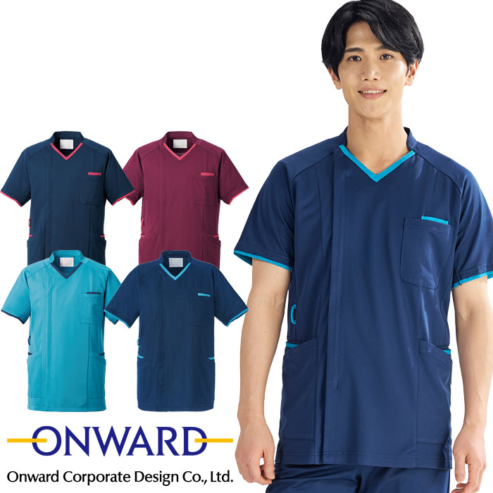 オンワード スクラブ 前開き 白衣 医療 HS-8058 メンズ ナース 看護師 クリニック おしゃれ ONWARD ラフィーリア