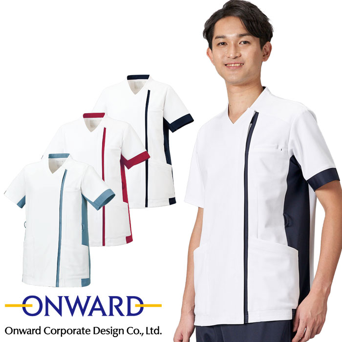 オンワード スクラブ 前開き 白衣 医療 HS-8071 男女兼用 ナース 看護師 クリニック おしゃれ ONWARD ラフィーリア