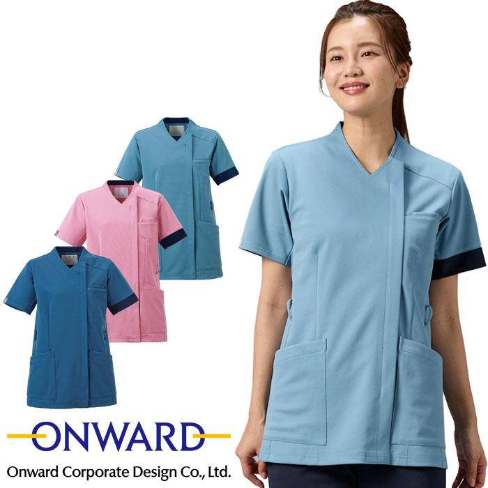 オンワード スクラブ 前開き 白衣 医療 HS-8073 男女兼用 ナース 看護師 クリニック おしゃれ ONWARD ラフィーリア