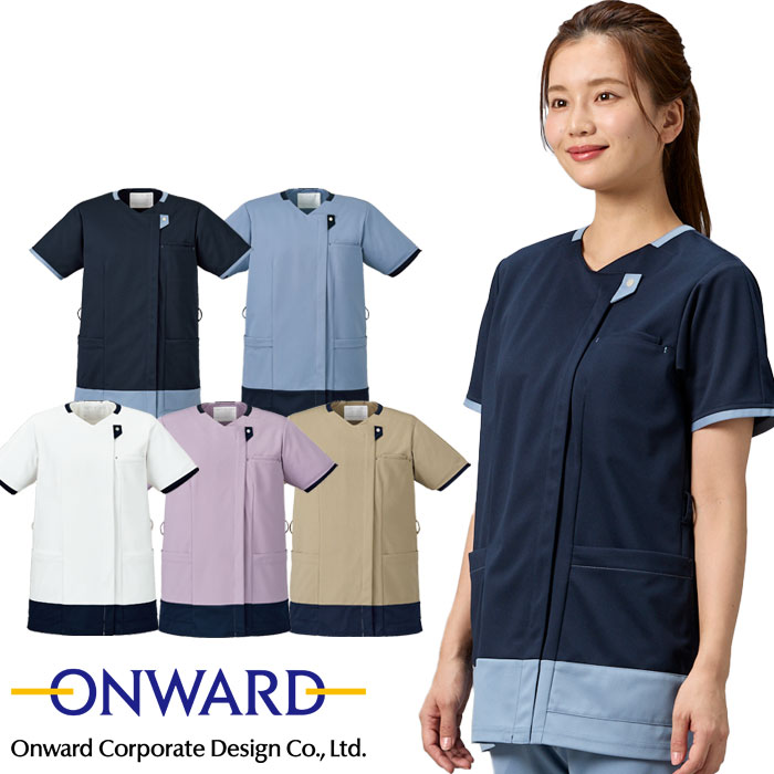 オンワード スクラブ 前開き 白衣 医療 HS-8115 男女兼用 ナース 看護師 クリニック おしゃれ ONWARD ラフィーリア