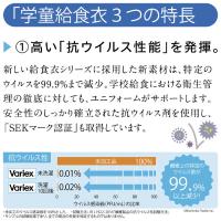 | 「安全・安心」をかたちに。児童の安全をサポートする「抗ウイルス加工」と保護者の負担を軽減する「ノンアイロン加工」のW効果により安心・安全のレベルを格段に高めた給食衣シリーズです。 |