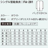 | シングル型給食衣(男女兼用/ユニセックス)FA281 |