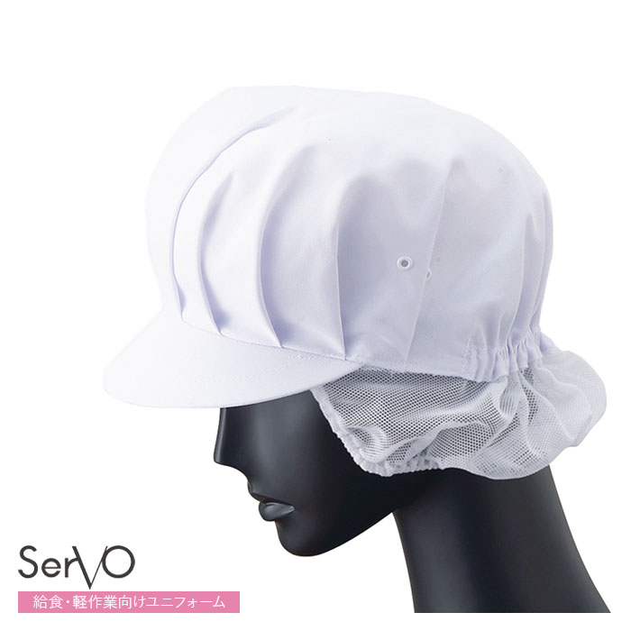 | 【キャスケットタイプ】 着脱が簡単で給食サービスや軽作業向け。ふんわりしたキャスケットは髪をしっかりホールドし、異物混入を防ぎます。デザイン性が高く、生鮮食品、総菜売り場、直販市場の対面販売などにもおすすめ。 |