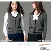 ニットベスト 前開き 事務服 レディース グレー 配色 U5124 UNILADY オフィスウェア 仕事服 制服 ユニフォーム
