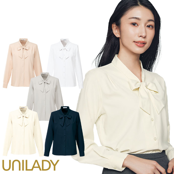 事務服 長袖ブラウス ボウタイ レディース U8124 UNILADY リボン オフィスウェア 仕事服 無地 制服 ユニフォーム 5号-15号