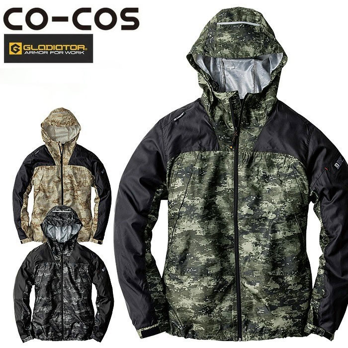 | *コーコス信岡・GLADIATOR (グラディエーター)* 無骨な迷彩パターンがアクセント。アウトドアテイストの機能も盛り込んだミリタリーパーカー。 |