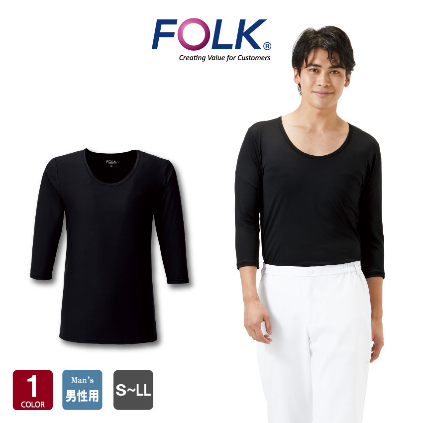 スクラブインナー 9002 メンズカットソー 8分袖 医療 S-LL オールシーズン ブラック アンダーウェア 医療 FOLK フォーク
