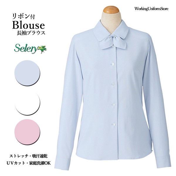 事務服 リボン付ブラウス 長袖 S-35962 35966 35968 リリーストレッチ セロリー