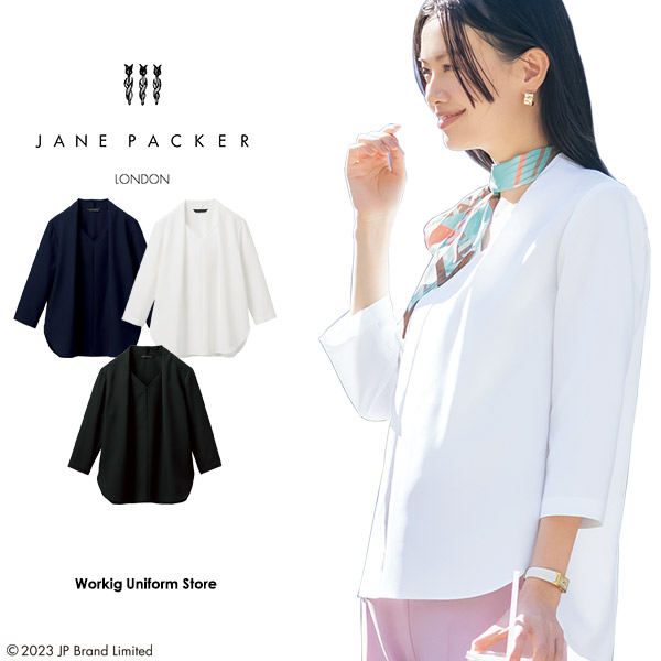 ジェーンパッカー 事務服 七分袖プルオーバー S-73010/1/8 カラット セロリー
