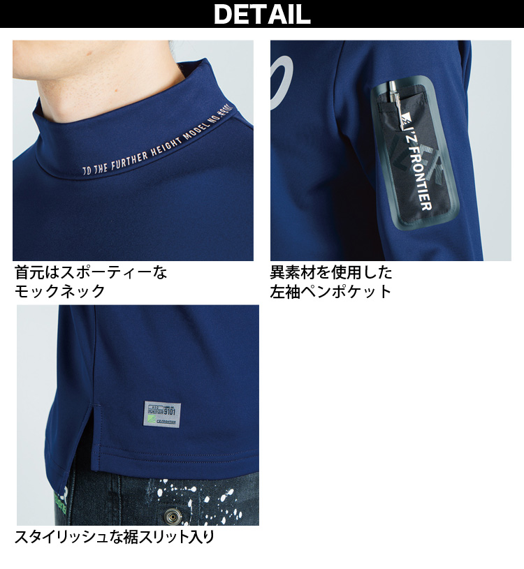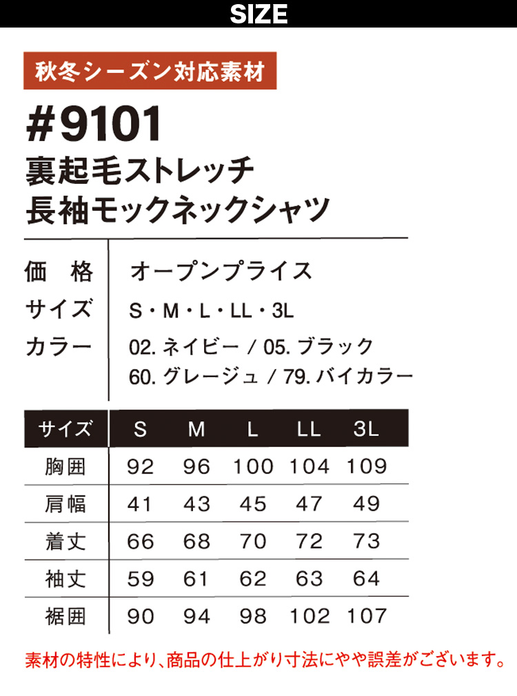 裏起毛ストレッチ長袖モックネックシャツ #9101